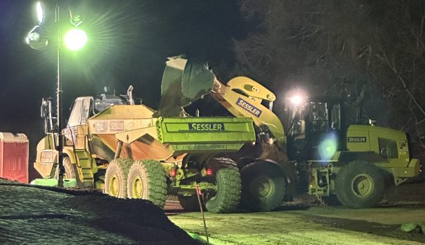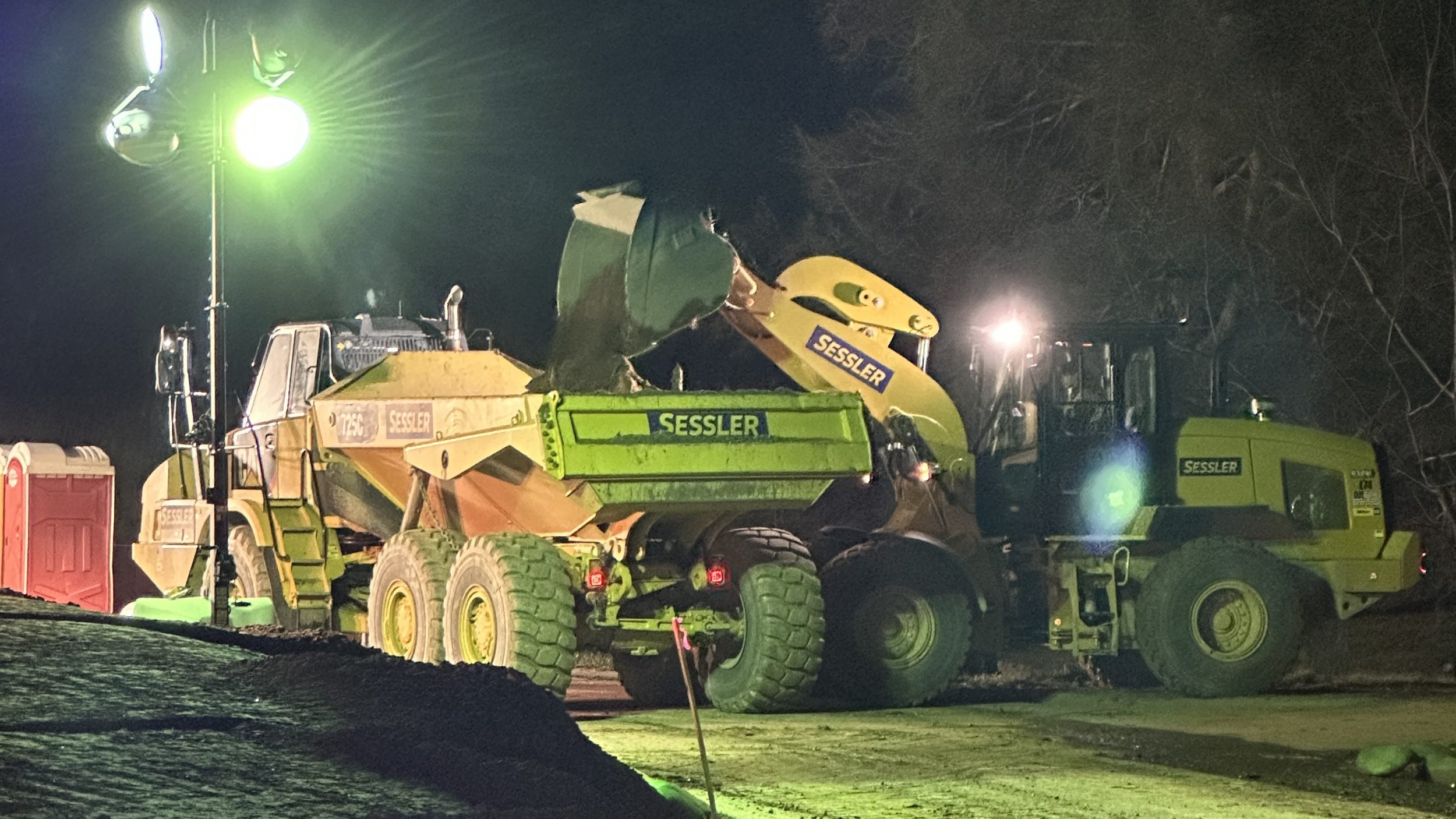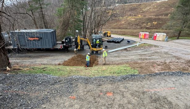 Scope of work included repairing 190 LF of roadway, installing a pad for a temporary water treatment system, installation of multiple pads around the site, and performing site grading.